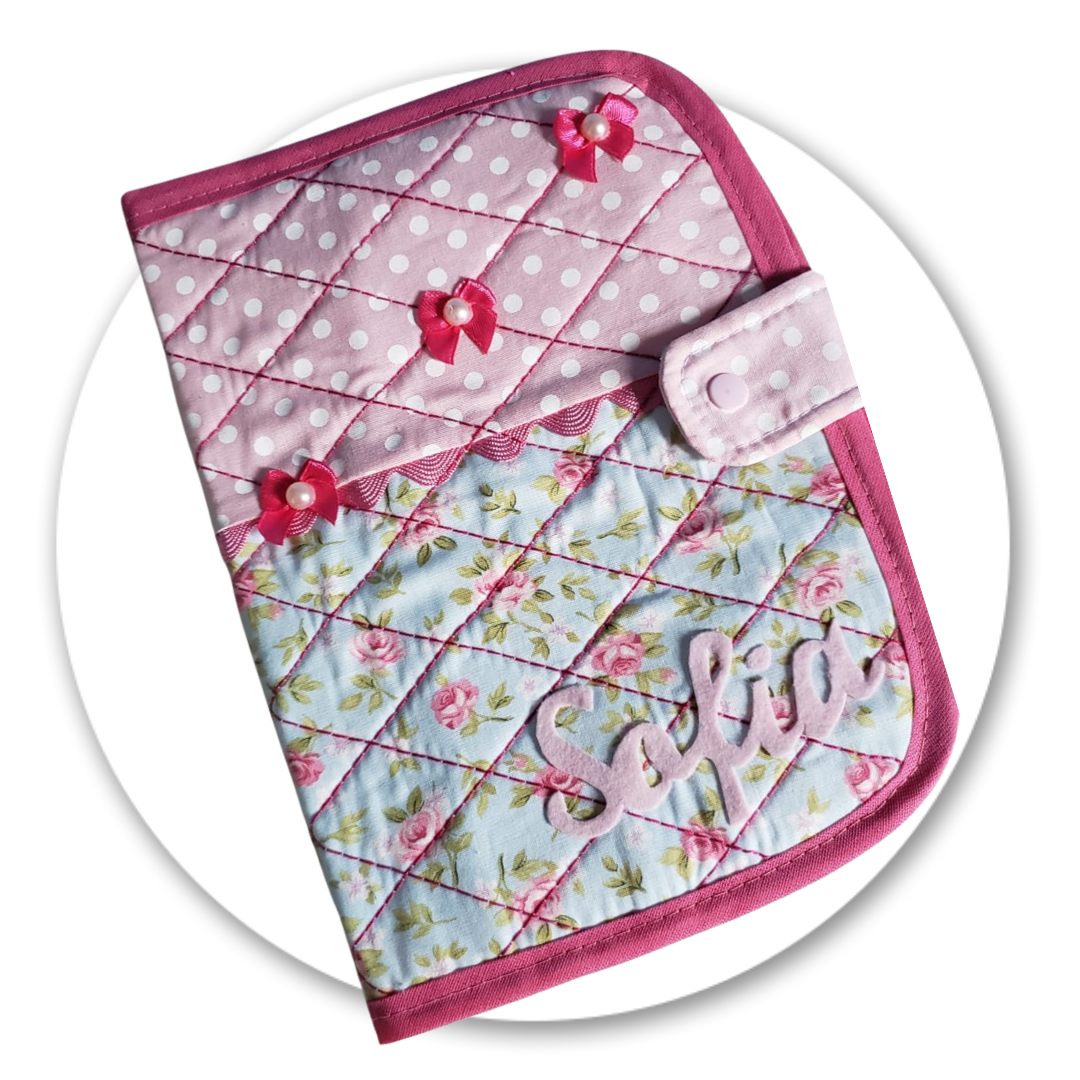 Porta documento personalizado! Uma forma charmosa de levar os documentos do bebê. Cartão de vacina, receitas etc. Estampas variadas a serem escolhidas na encomenda